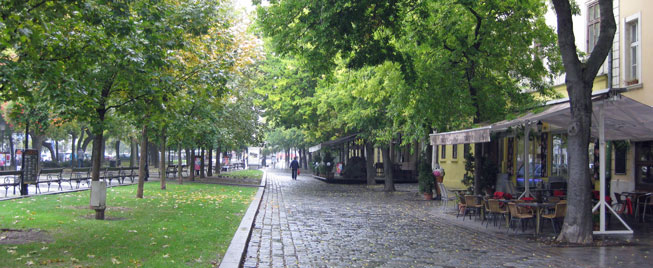Main Street Lovers Point where we had lunch. Considering the number of people all through the street in Carmel the streets here were surprisingly quiet. There were alternate street plantings here of orange and red flowering gums.