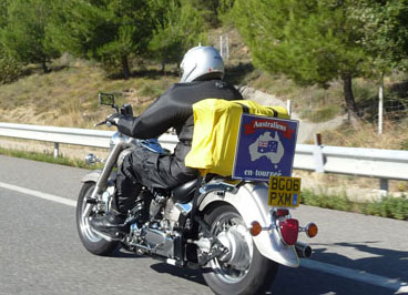 An intriguing rego plate on a motorcycle, would have liked to see who came to get on it!