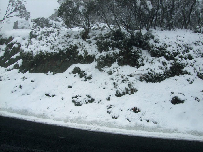 The snow across the road from where we parked up near the top of Mt Hotham.....and it increased in depth and coverage from here on up and down a considerable distance on the other side. Awesome!