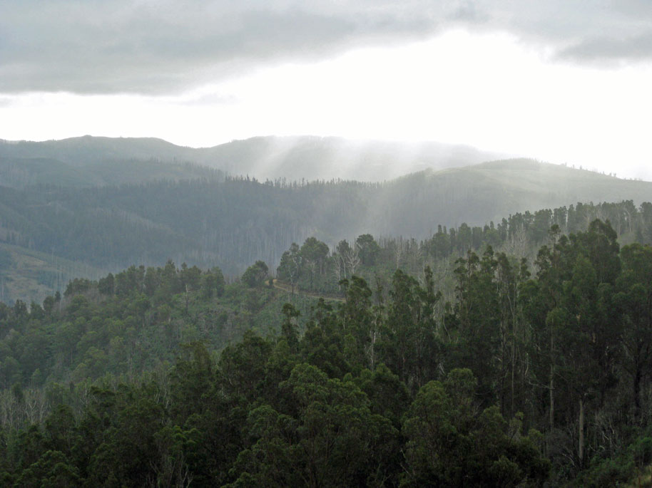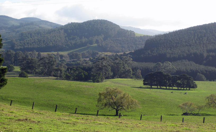 A view from the roadside to the plantation covered hills as we head for the leafy glades of Tarra Valley.